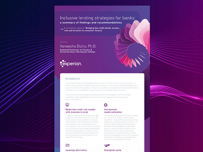This summary outlines important research findings that help lenders drive a more inclusive environment for customers, while mitigating risk.
